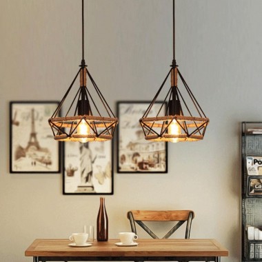 pendul din lemn, 1 soclu E27, metal negru cu lemn